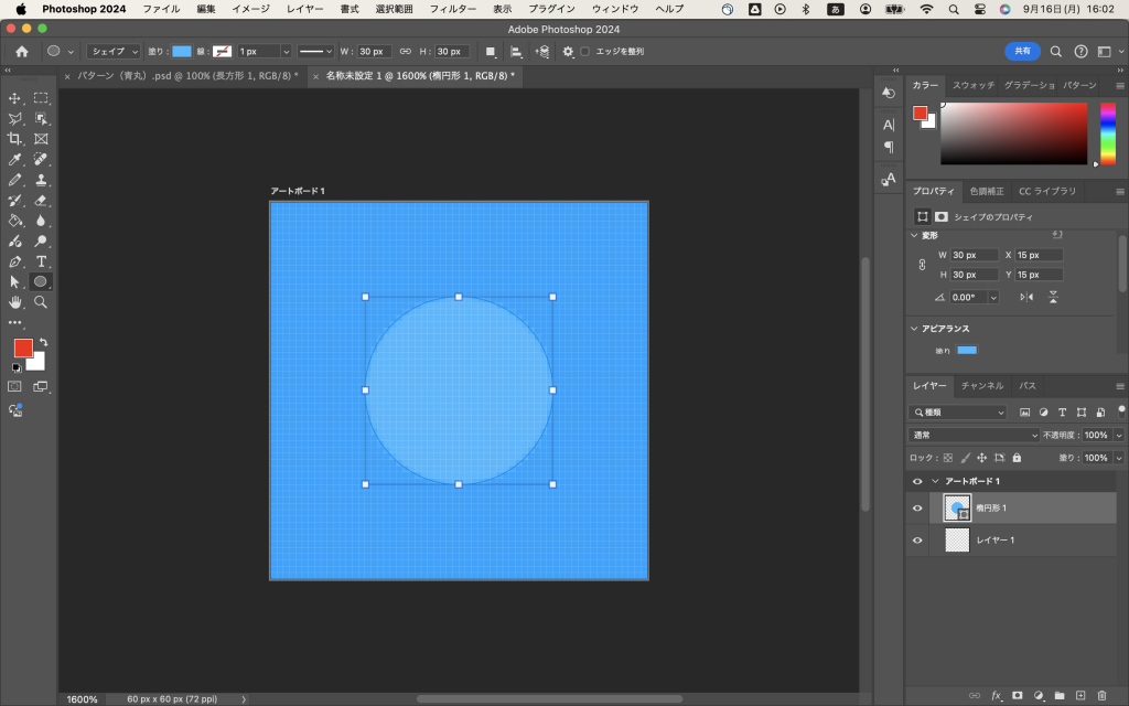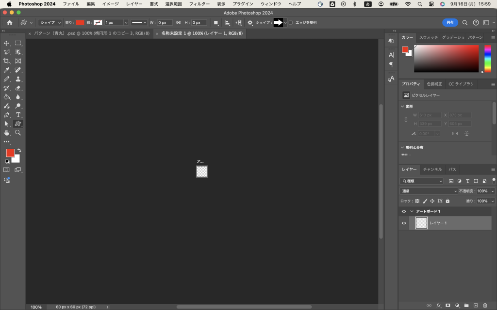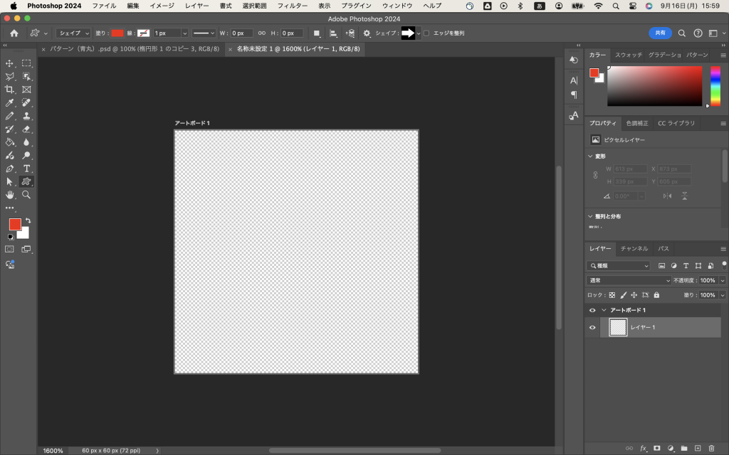 まずアートボードを作る。ここでアートボードのサイズを60px×60pxにする