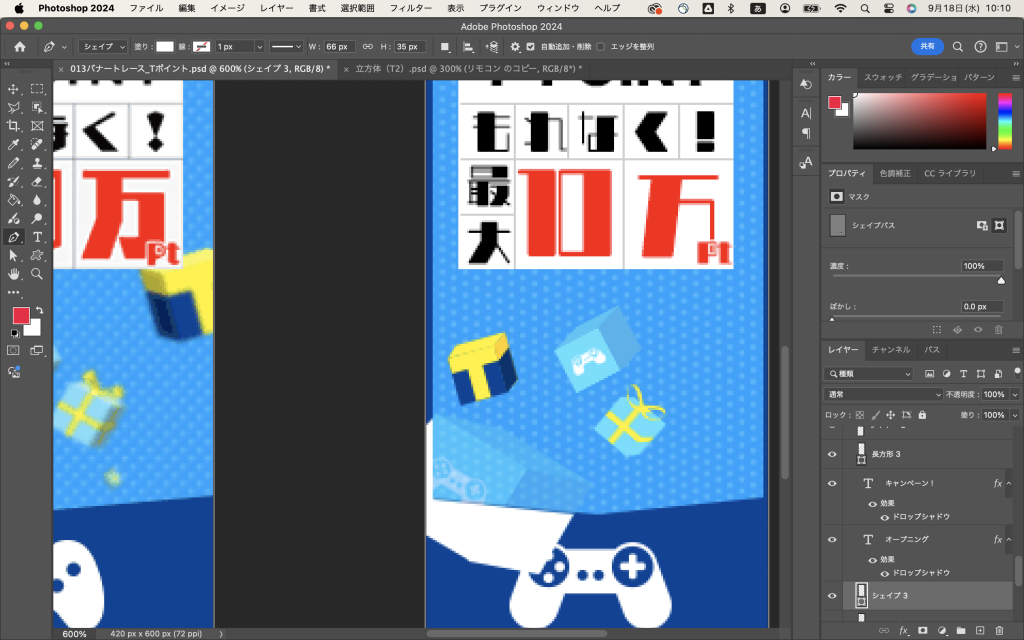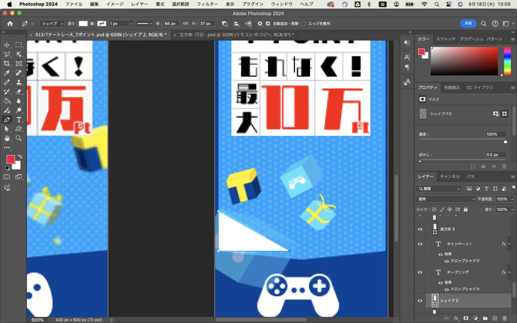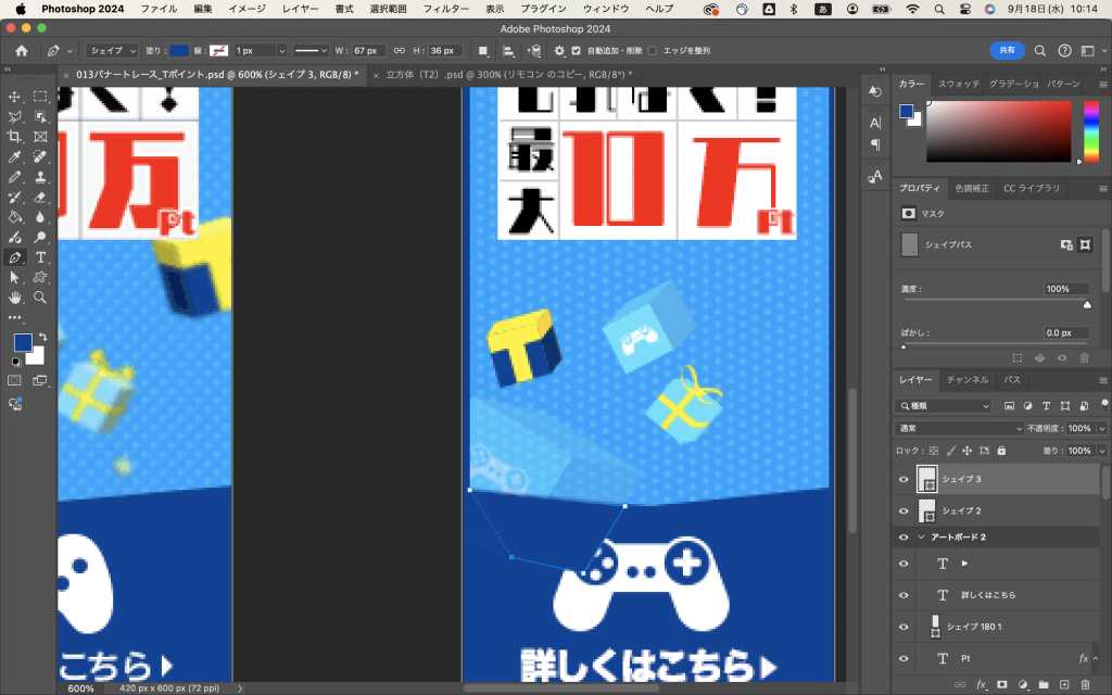 …そしてほんとに今気がついたんですけど、本当はクリッピングマスクとかでやるのかしらね…?でも他のシェイプとの兼ね合いが難しいしなぁ…。