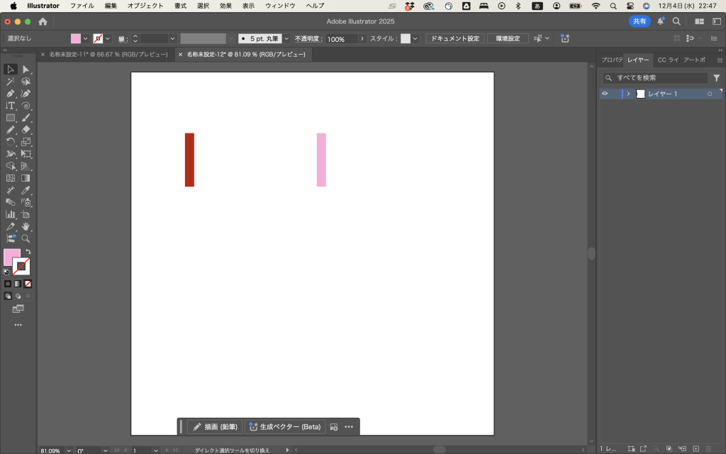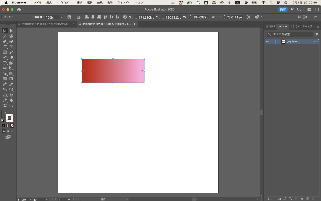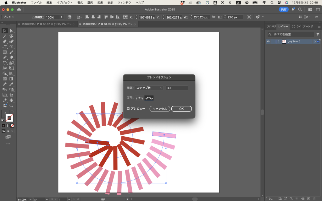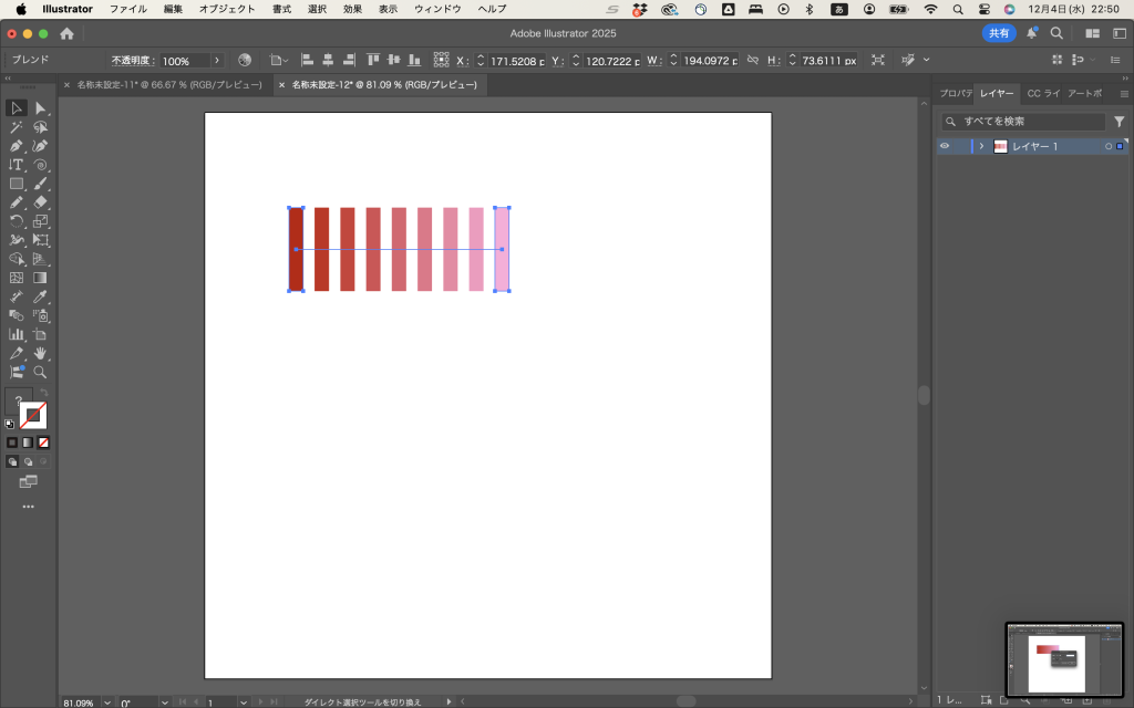 二つの長方形を選択して、オブジェクト→ブレンド→作成、と押すと…