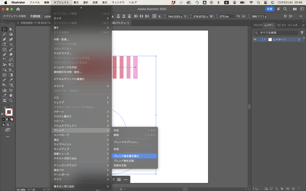 「ブレンド」→「ブレンド軸を置き換え」を選択すると、
